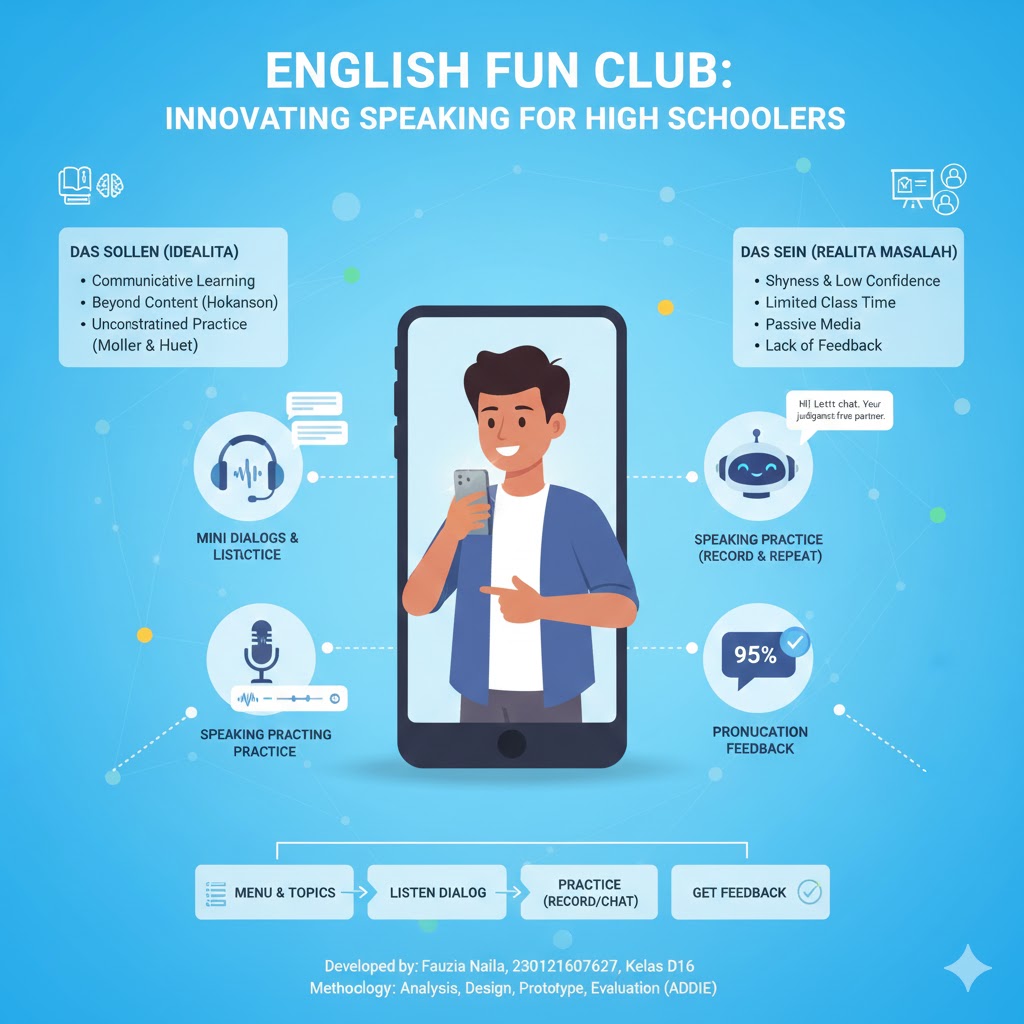 Secara keseluruhan, English Fun Club berhasil menjawab permasalahan awal terkait pembelajaran Bahasa Inggris yang sering terlalu berfokus pada evaluasi. Dengan menempatkan materi sebagai tahap utama, produk ini memberikan pengalaman belajar yang lebih terstruktur dan ramah bagi pengguna.