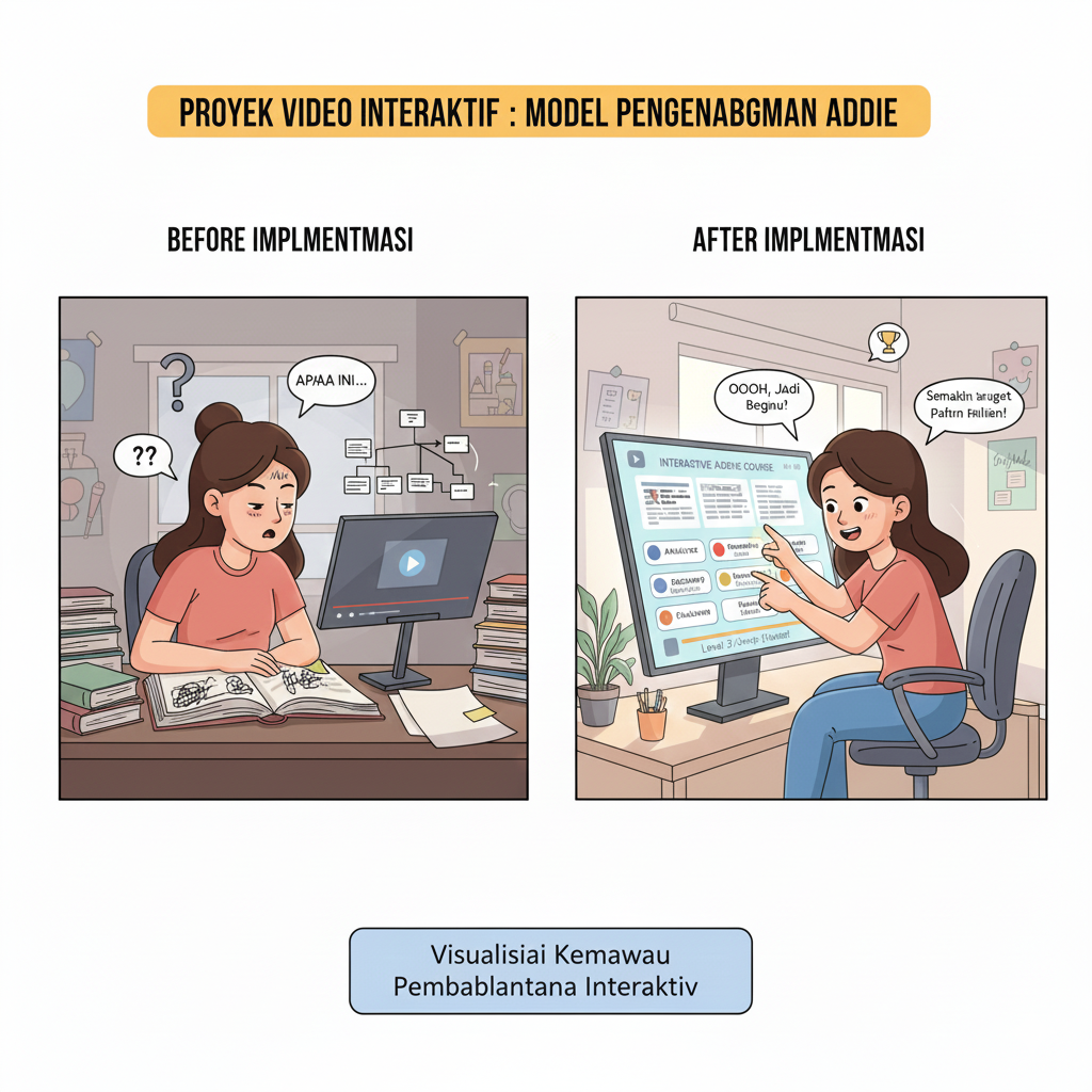 Dengan demikian, proyek pengembangan INTERACT telah menyelesaikan siklus pembelajaran dan pengembangan konten digital secara komprehensif, mulai dari analisis kebutuhan pengguna hingga diseminasi hasil. Melalui tahap analisis, identifikasi masalah rendahnya keterlibatan kognitif dalam video pembelajaran LMS telah dilakukan. Pada tahap desain, prinsip pedagogi refleksi diterjemahkan ke dalam storyboard dan prototype interaktif. Tahap produksi berhasil mewujudkan video dengan point-of-reflection yang fungsional, diikuti oleh implementasi dan evaluasi yang membuktikan peningkatan engagement pengguna. Terakhir, diseminasi melalui kanal visual dan konseptual telah memperluas dampak dan kontribusi proyek ini bagi komunitas pendidikan. Dengan menyelesaikan seluruh rangkaian ini, proyek INTERACT tidak hanya menghasilkan produk yang siap pakai, tetapi juga menutup siklus belajar yang utuh, yang menguatkan kompetensi pengembang dalam menciptakan solusi teknopedagogis yang relevan dan berkelanjutan untuk tantangan pembelajaran di era digital.